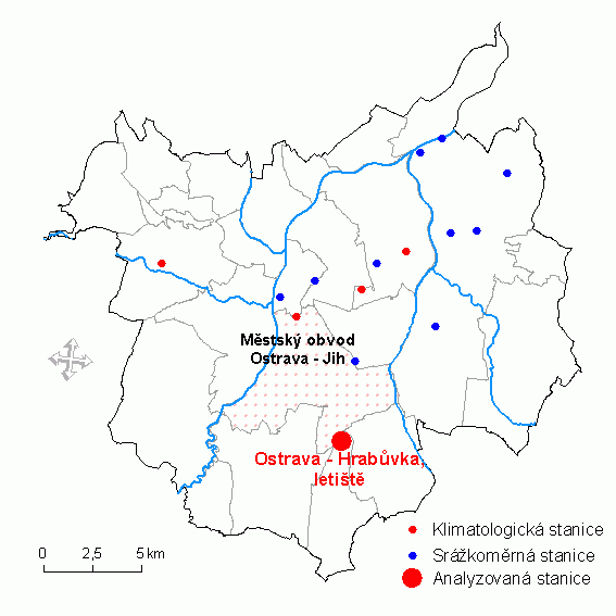nasycení byl používán Augustův psychrometr. Průměrná rychlost větru byla měřena