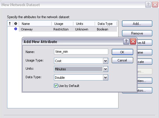 V ukázkových příkladech je použita silniční síť StreetNET CZE verze 1105 od společnosti CEDA. Tyto data jsou majetkem katedry geoinformatiky. V datech jsou ošetřeny všechny nastavení - jednosměrky, mimoúrovňová křížení, vzdálenosti, rychlost (zde) . Z atributů jsme nastavili omezení (Restriction) na jednosměrky, mimoúrovňová křížení a mosty (+ tunely). Dále jsme nastavili čas jako klíčový odporový faktor, tedy náklad na překonání sítě (Cost). StreetNET obsahuje atributy popisující tyto nastavené vlastnosti. Nebylo tak nutné je nově vytvářet, což je pro celou síť velmi obtížné. Jediný dopočítávaný atribut byl čas tak, abychom nemuseli počítat zvlášť se vzdáleností a omezením rychlosti. Jednodušše jsme podělili vzdálenost a rychlost a získali čas, který bylo nutné převést na minuty.