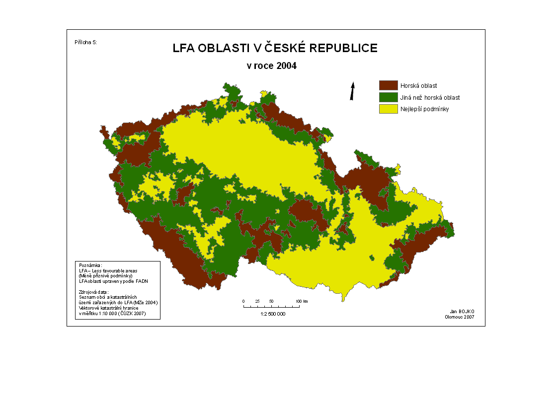 Získání a zpracování prostorových a tematickych dat, a také jejich generalizace. Zařazení územní jednotek do kategorizace LFA a ZVO (ukázková mapa zde) a vytváření polygonových vrstev, na které je možné napojit atributova data FADN CZ (ukazkova mapa zde).