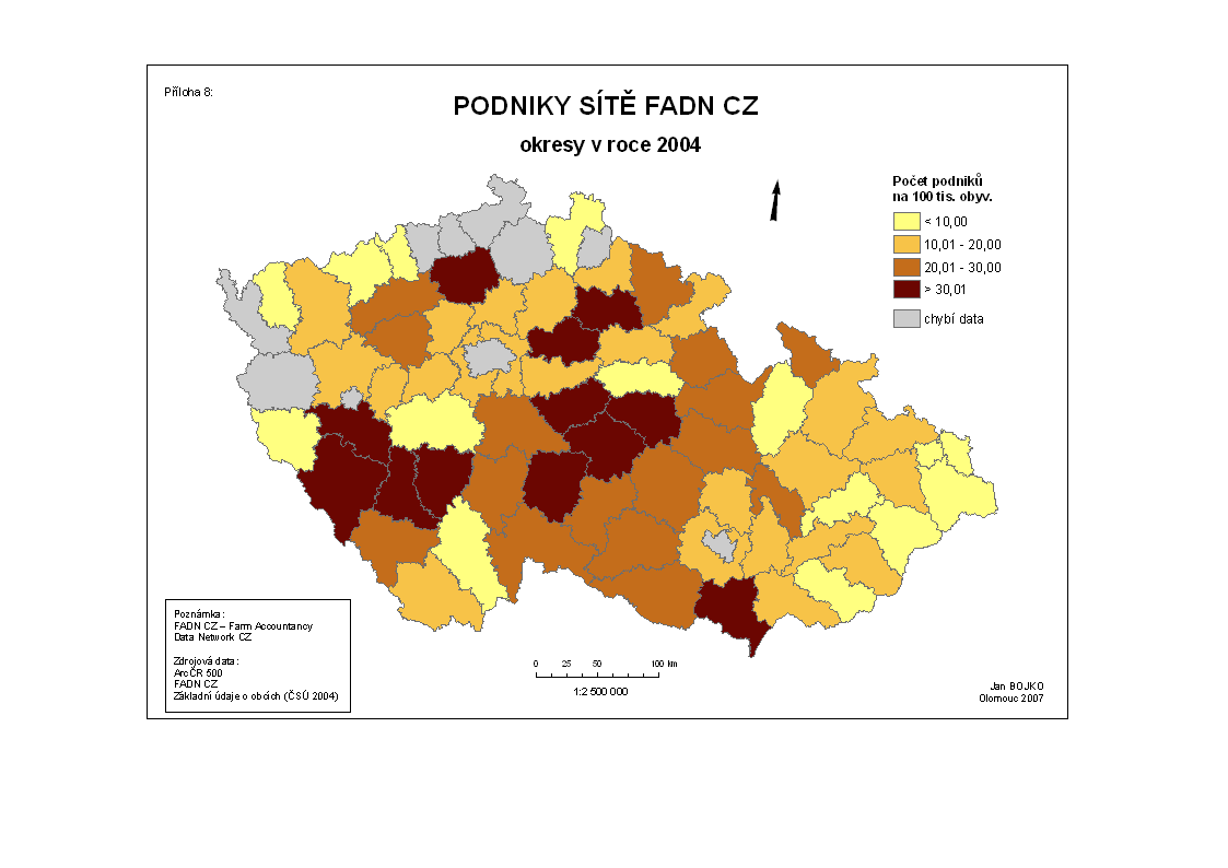 Zkoumání rozložení podniků sítě FADN v jednotlivých agregacích databáze a naznačení vhodnosti těchto polygonů. Úkázková mapa zde.